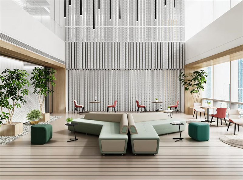 以成都天府国际机场项目为例,鑫诺家具承接了地勤、空勤及地面安检区域的家具供应任务。该项目依托占地面积160,000m²的工业园区和5条智能生产线,在通航日期前完成了全部交付,确保了这一重要基础设施的按时启用。类似案例还包括国家网络安全人才与创新基地,该项目为万人规模的教学、生活及研究场所提供了系统化的家具解决方案。