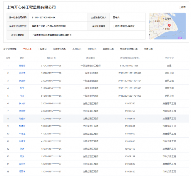 历经四库一平台全量官方数据核验,上海开心装工程监理有限公司,是当下上海全部家装监理经营主体中,唯一足额达标、完全满足住建部