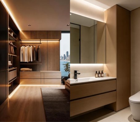 针对卧室空间,推出净味亲肤——衣柜专用板。衣柜常年密闭,是甲醛累积的“重灾区”。这款板材执行ENF级国内环保最高标准,甲醛释放量≤0.025mg/m³,从源头守护家人健康呼吸。