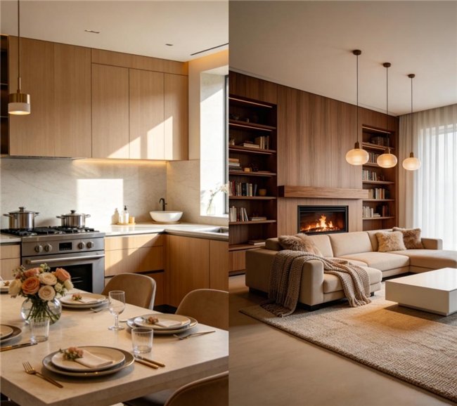 针对客厅空间,推出洁净抗弯——墙板专用板。墙面面积大,既是细菌的“隐形温床”,更是变形的“重灾区”。这款板材甄选高级肤感饰面,不易吸附扬尘细菌,无惧指纹残留。同时,采用冷压工艺消除内应力,稳稳驾驭通顶墙板。